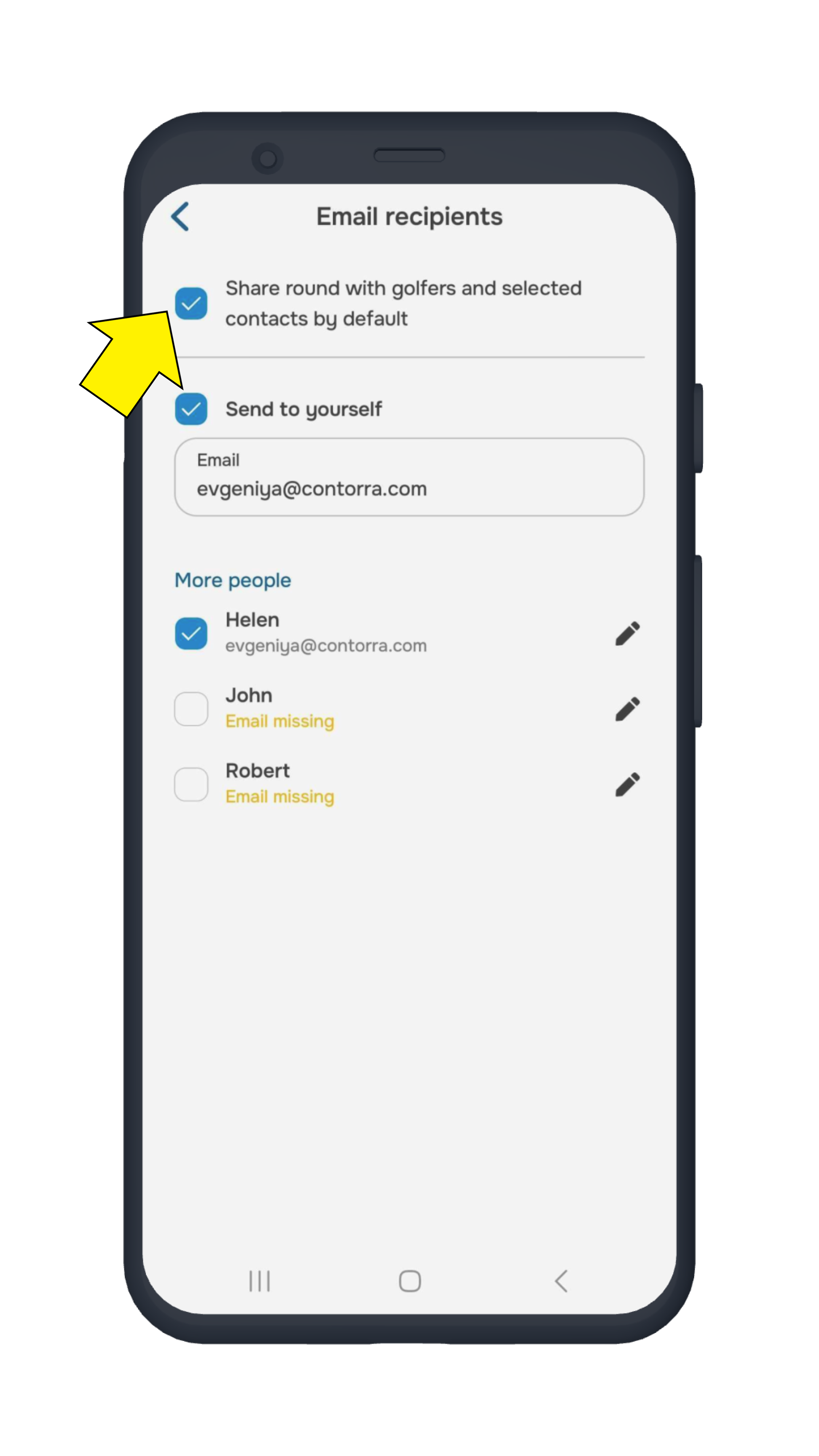 On Android, please select "Share round with golfers and selected contacts by default" at the top of the screen.