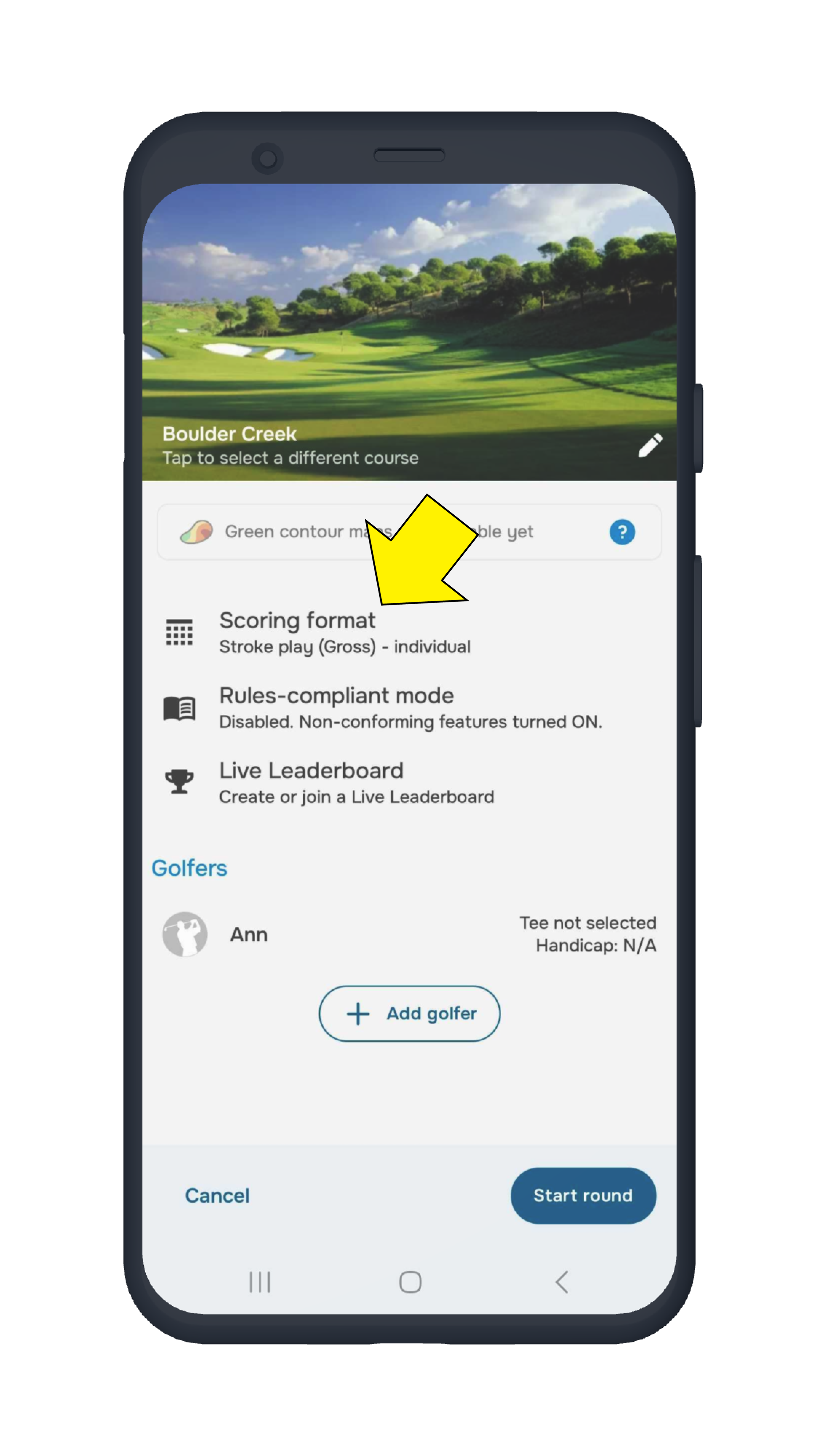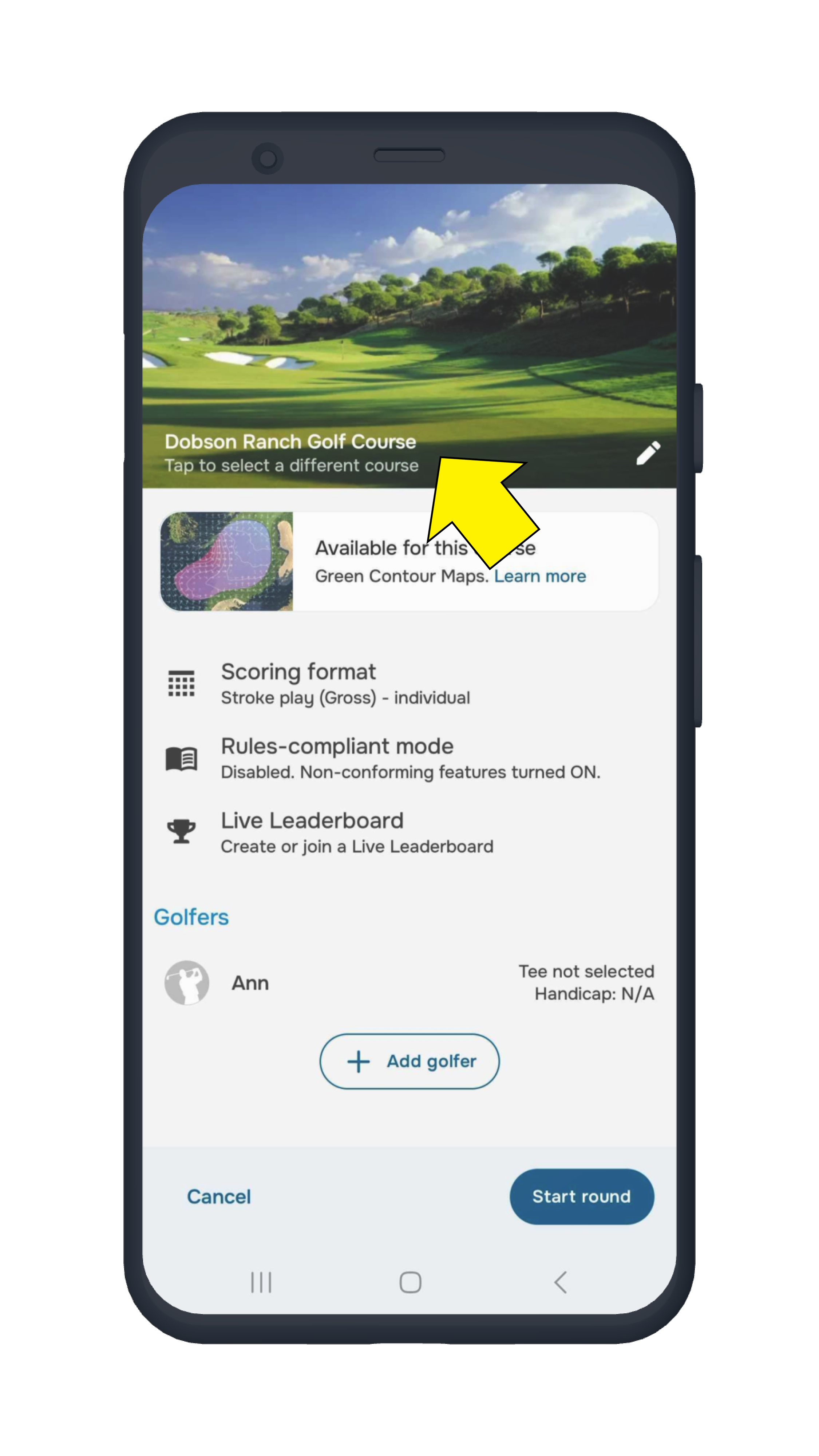 - Once everything is set, tap “Start Round” in the lower-right corner.