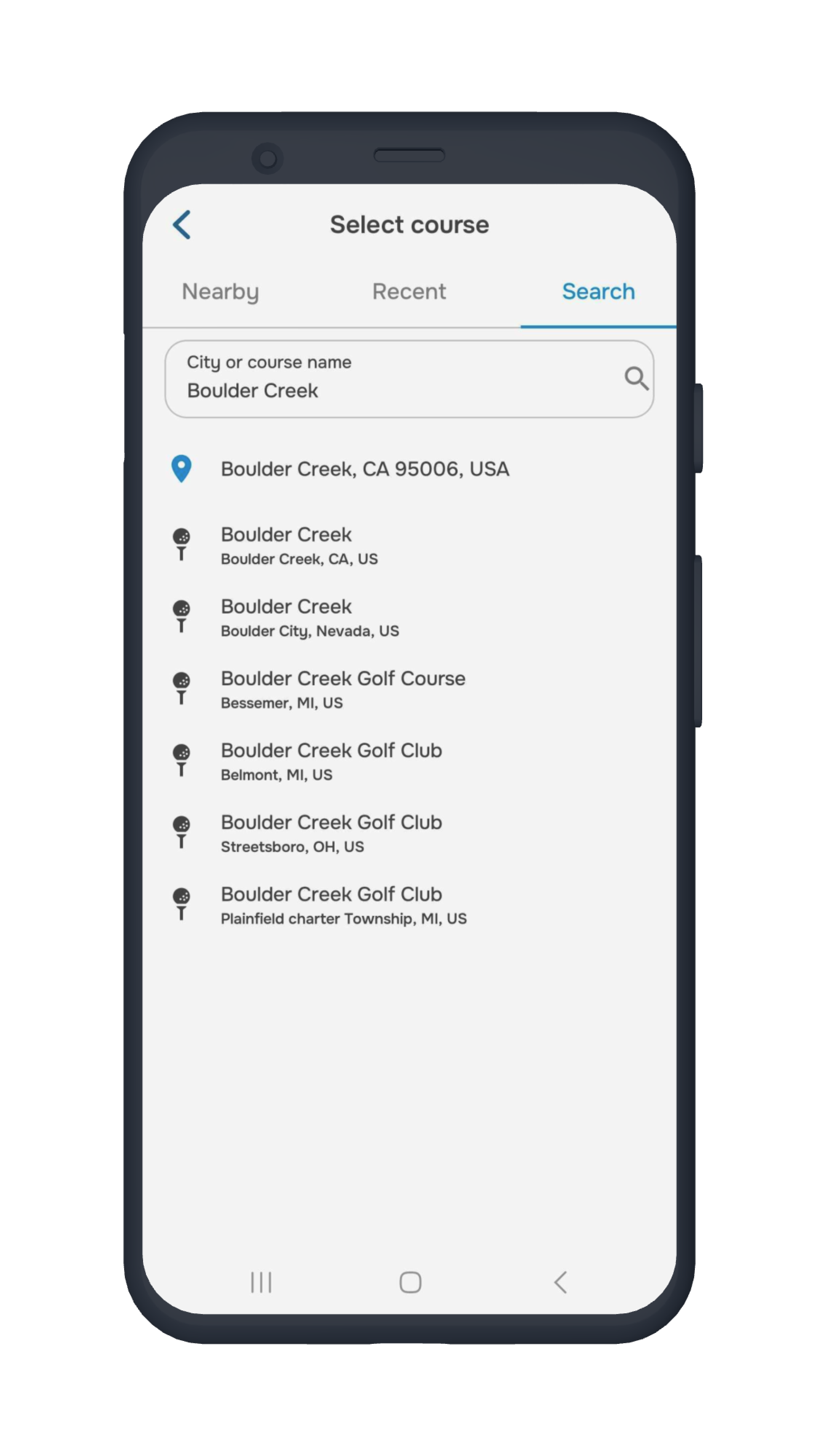 - Enter the city or course name to find it.