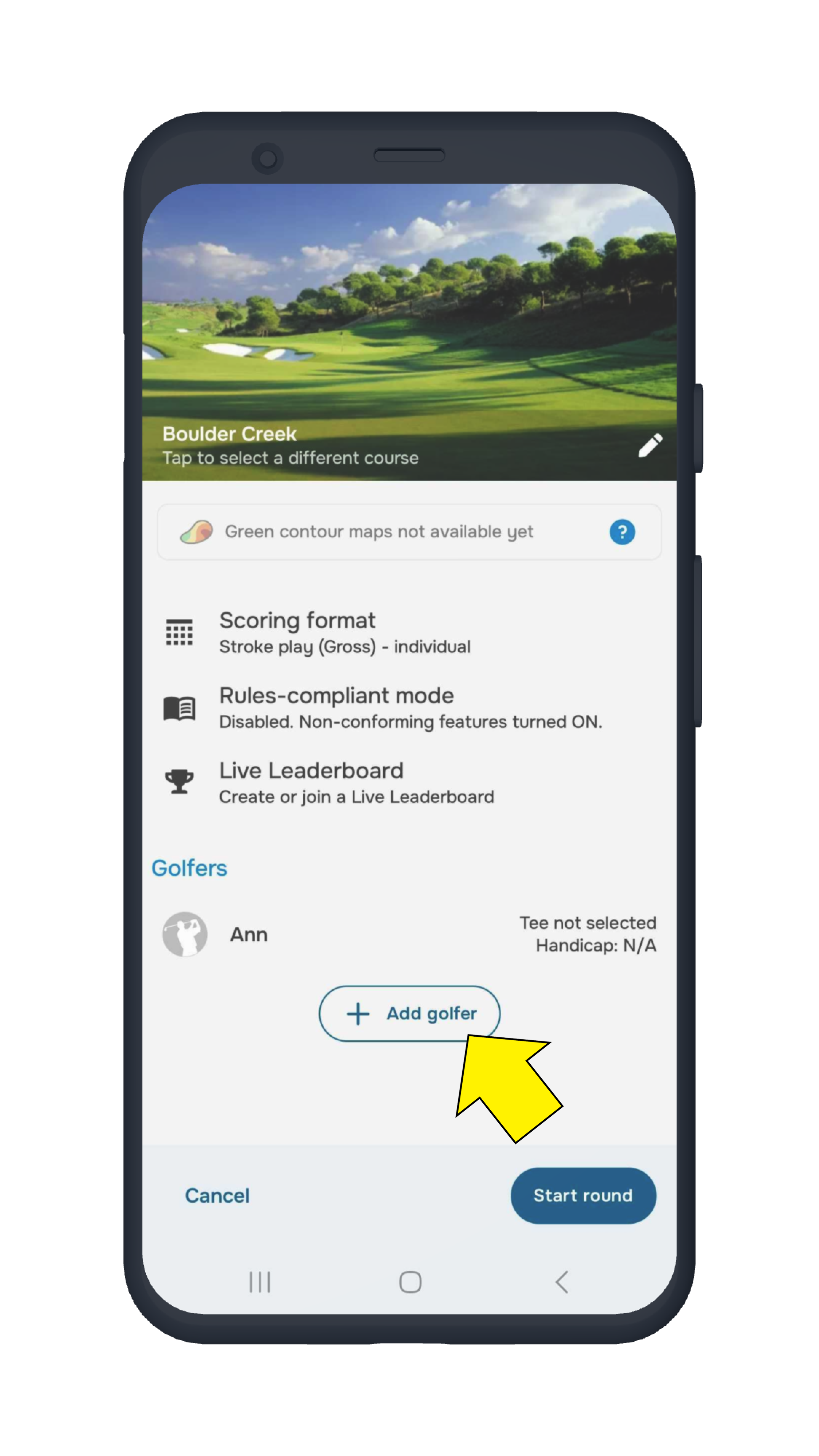 - Tap “+ Add Golfer” to include other players in your round.