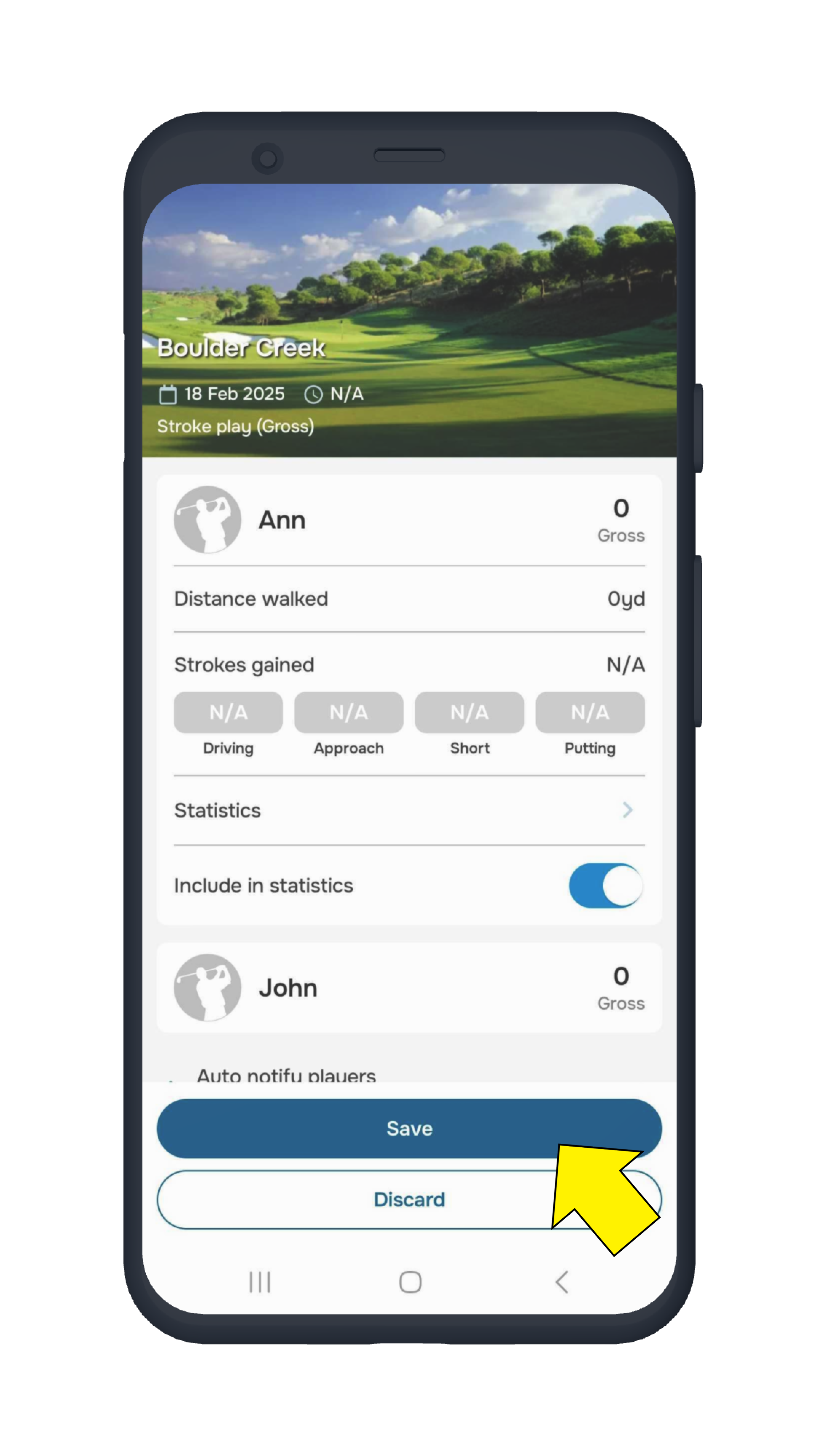 Saving your round allows you to track stats and analyze your performance over time!