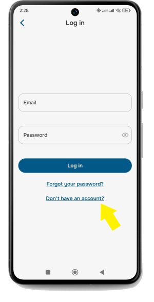 5. Choose "Don't have an account?" to create a new Golf Pad account or complete the email and password fields and tap "Log in" to log in with an existing account.