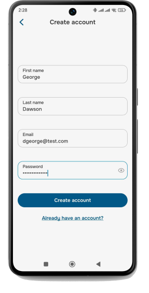 6. Complete the fields shown, then click "Create account". Keep your password in a safe place.