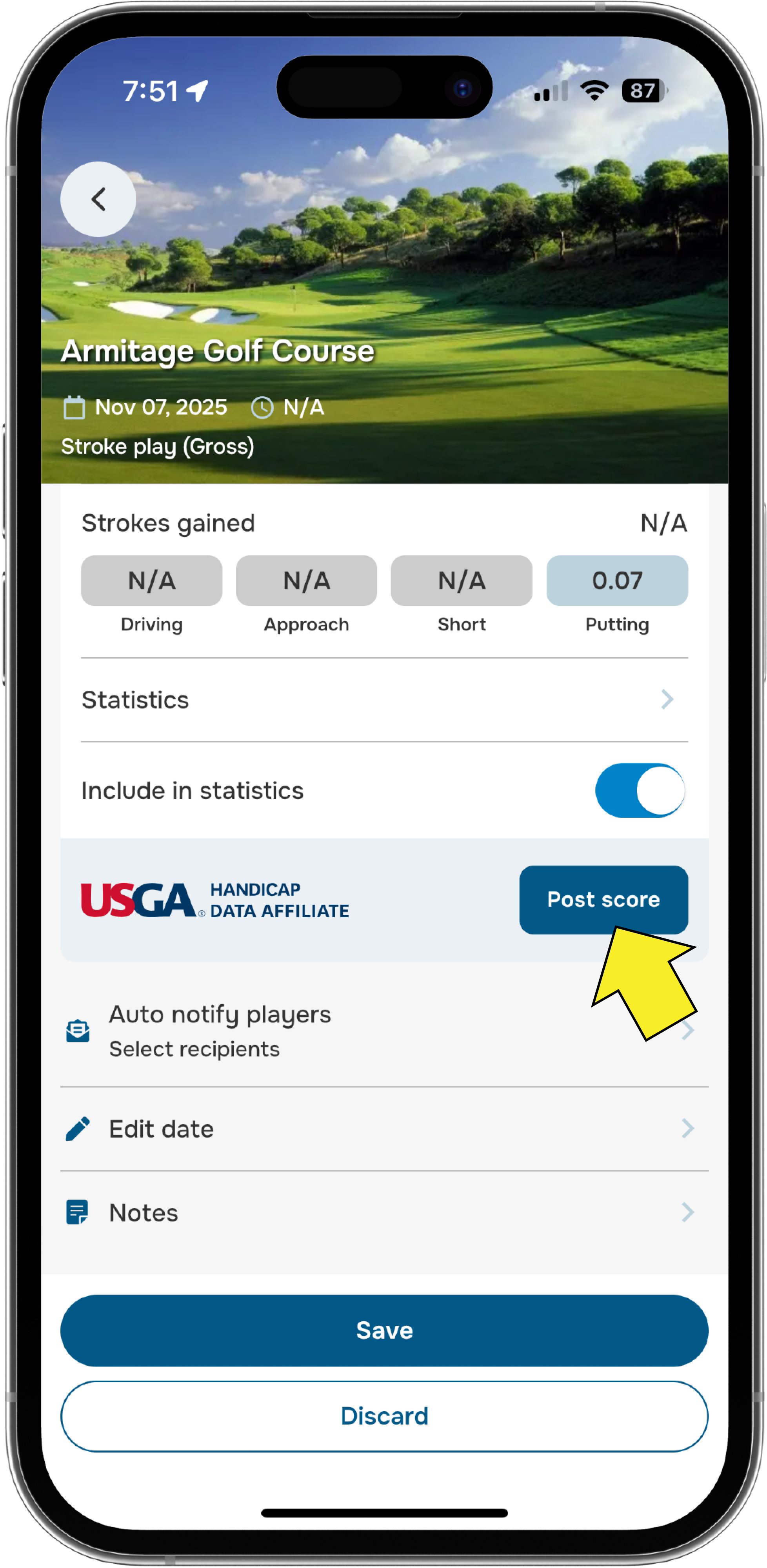 Missed posting your score at the end of the round? No problem - you can submit it anytime from your Playing history.
