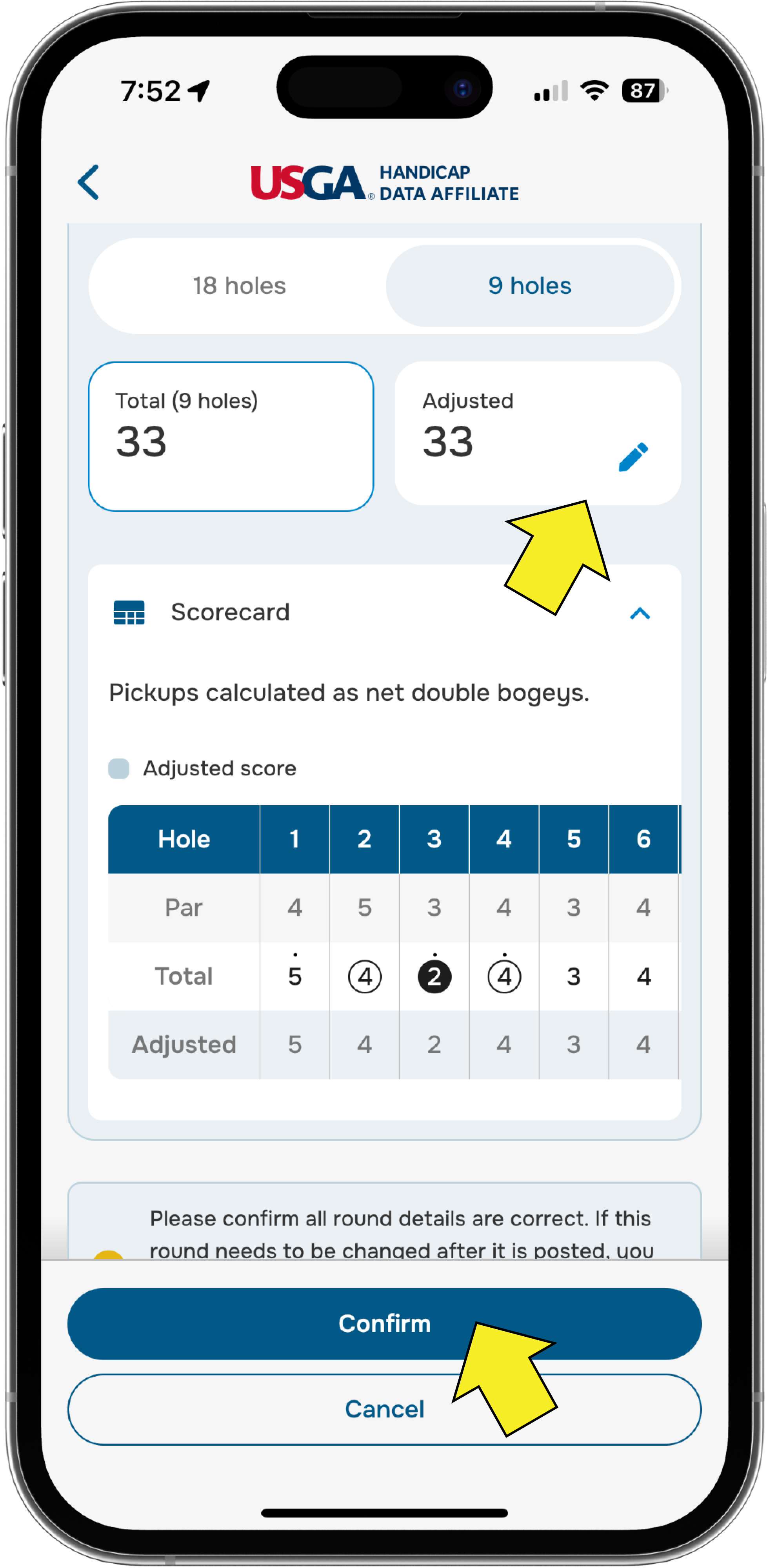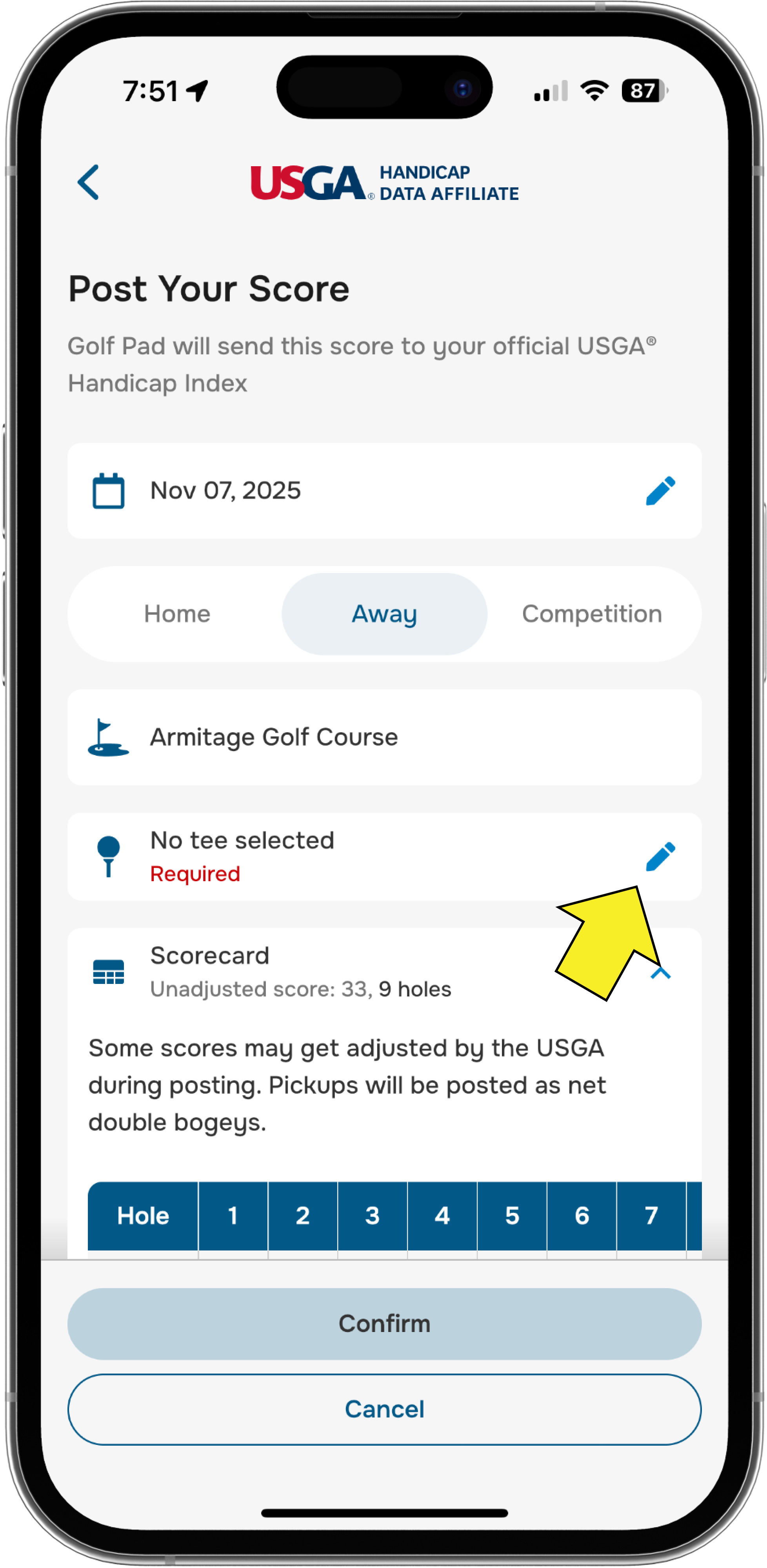 5. Tap Confirm, and your score is now posted!