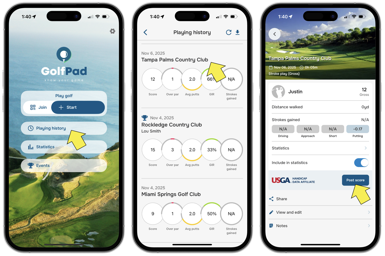 Posting your scores to the USGA® Handicap Index™ is quick and easy. Just follow these steps: